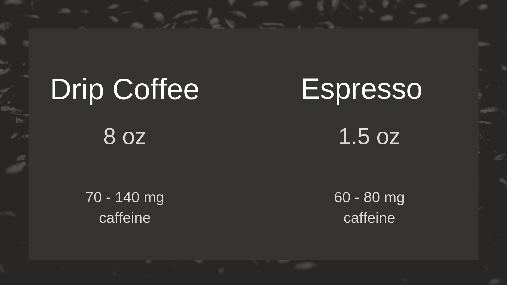 While a cup of coffee technically has more caffeine than a shot of espresso, if we were to pour that drip coffee into an espresso cup (or vice versa) than it would be the espresso with more caffeine.